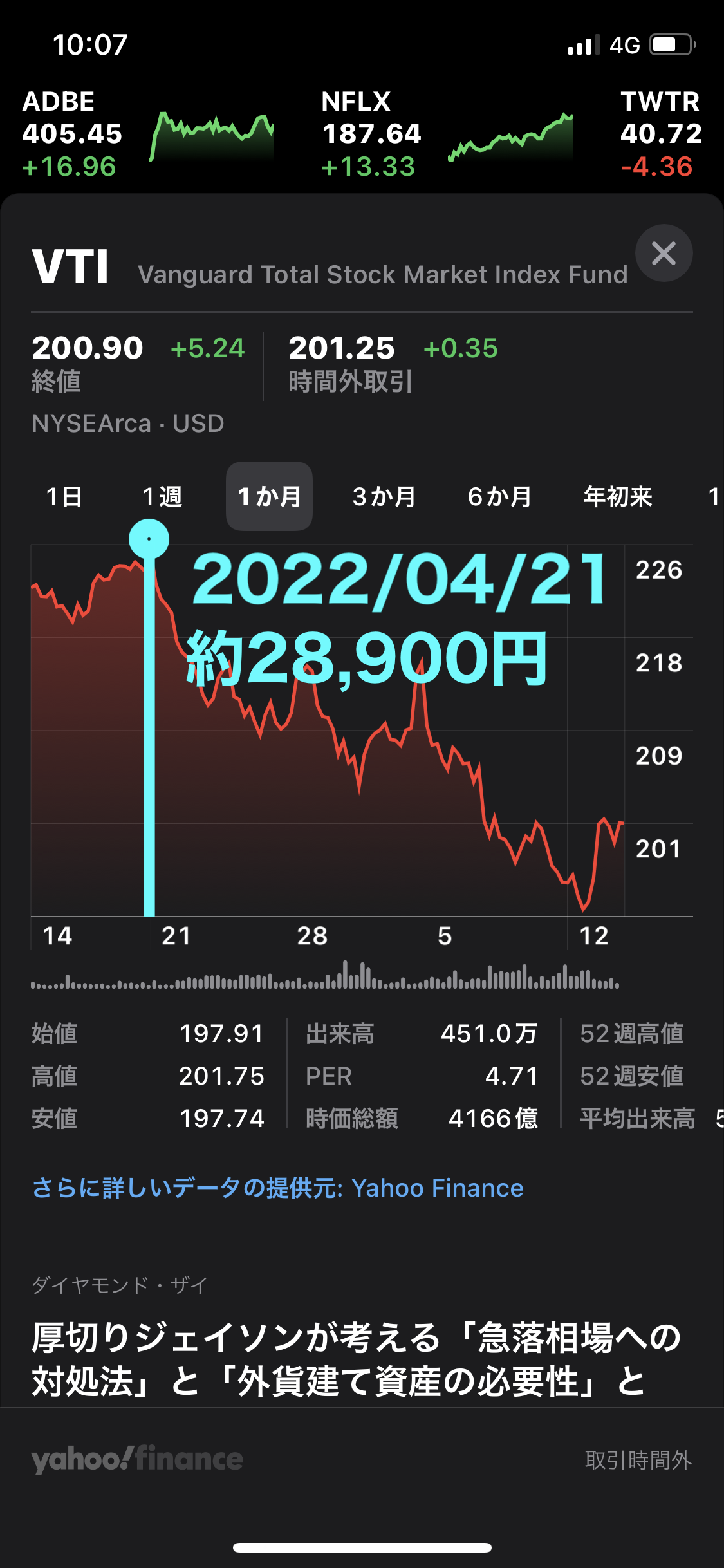 ・2022年4月21日時点:VTIを1口約28,900円で買える