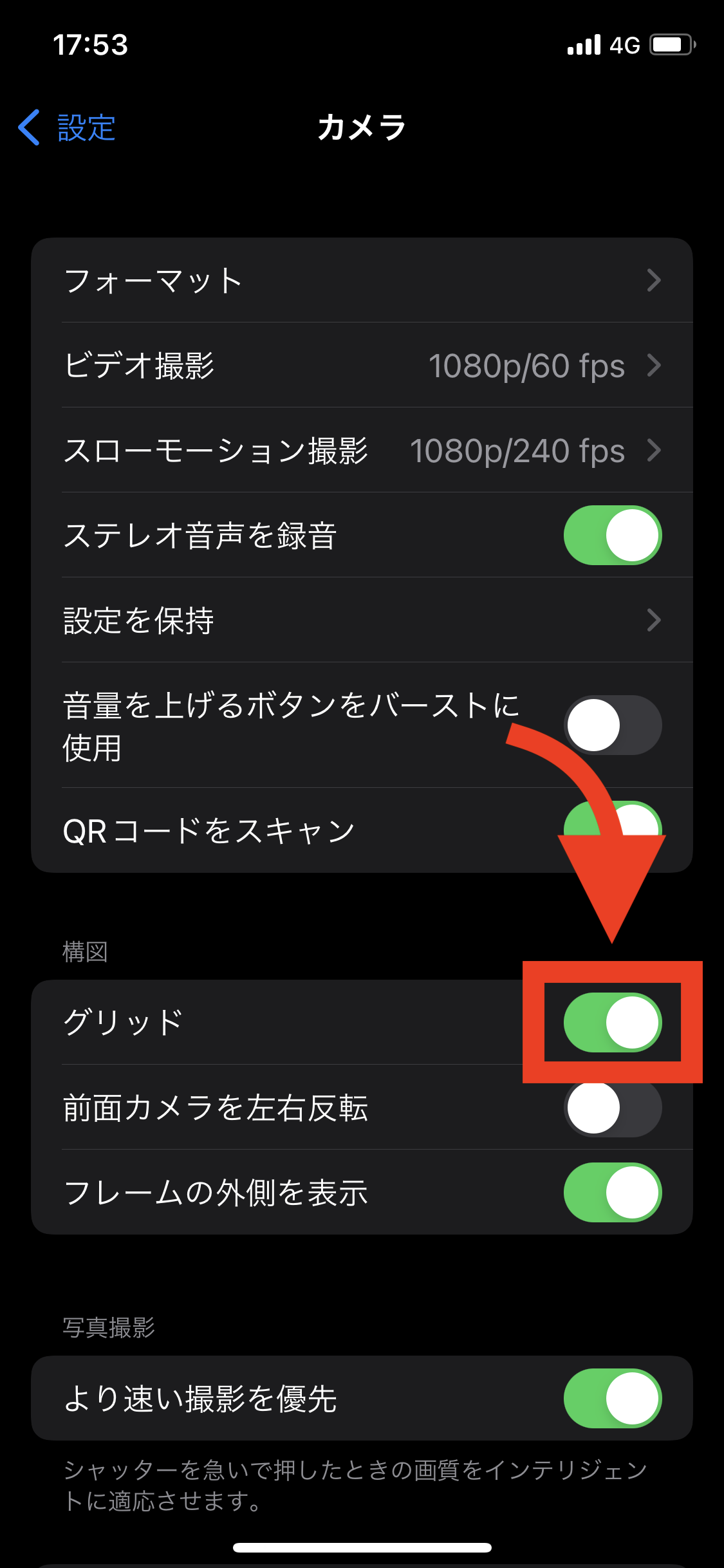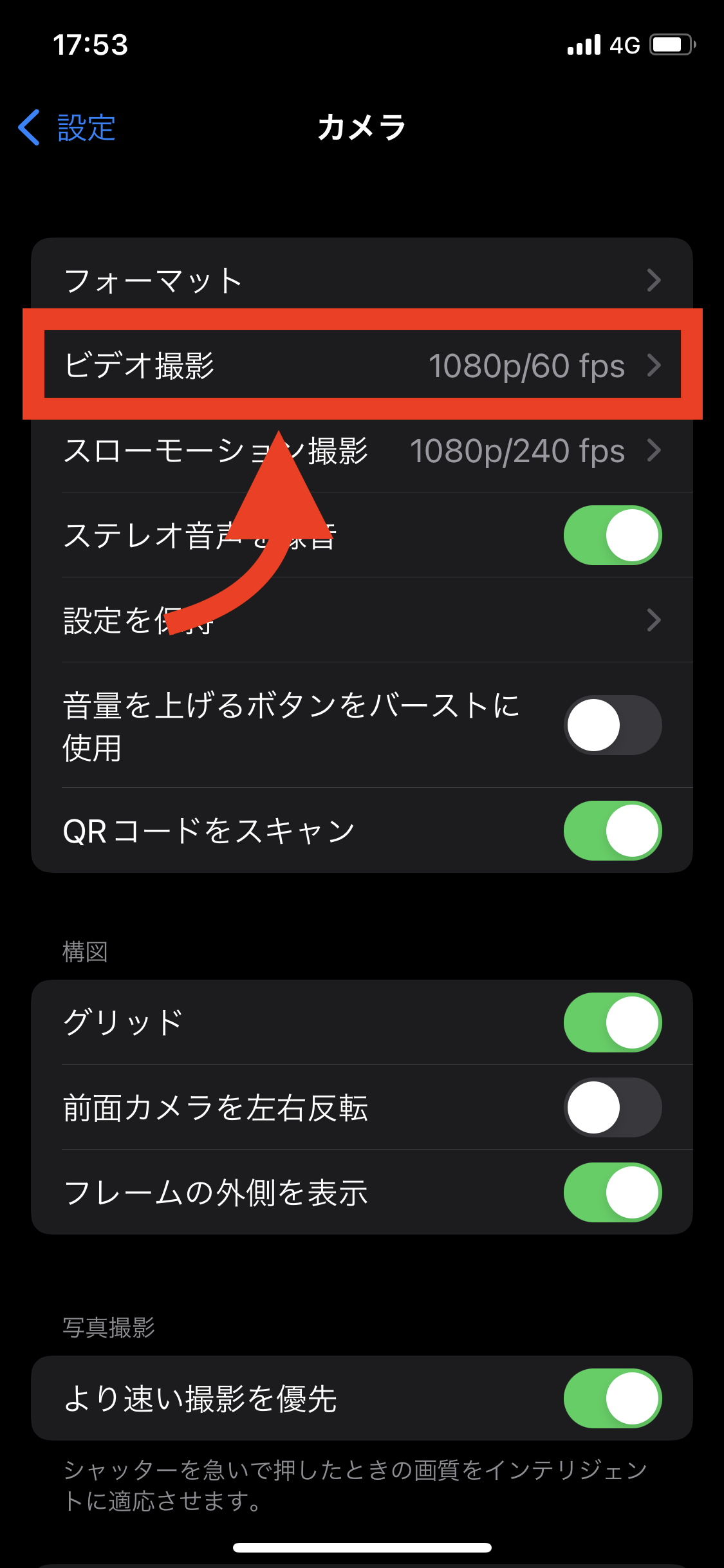 これで、iPhoneでなめらかに動画を撮影する設定が完了しました。