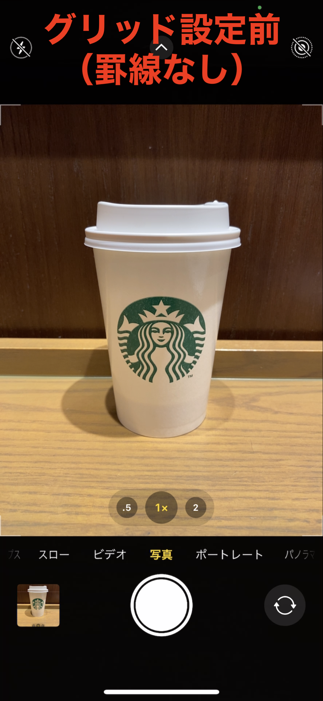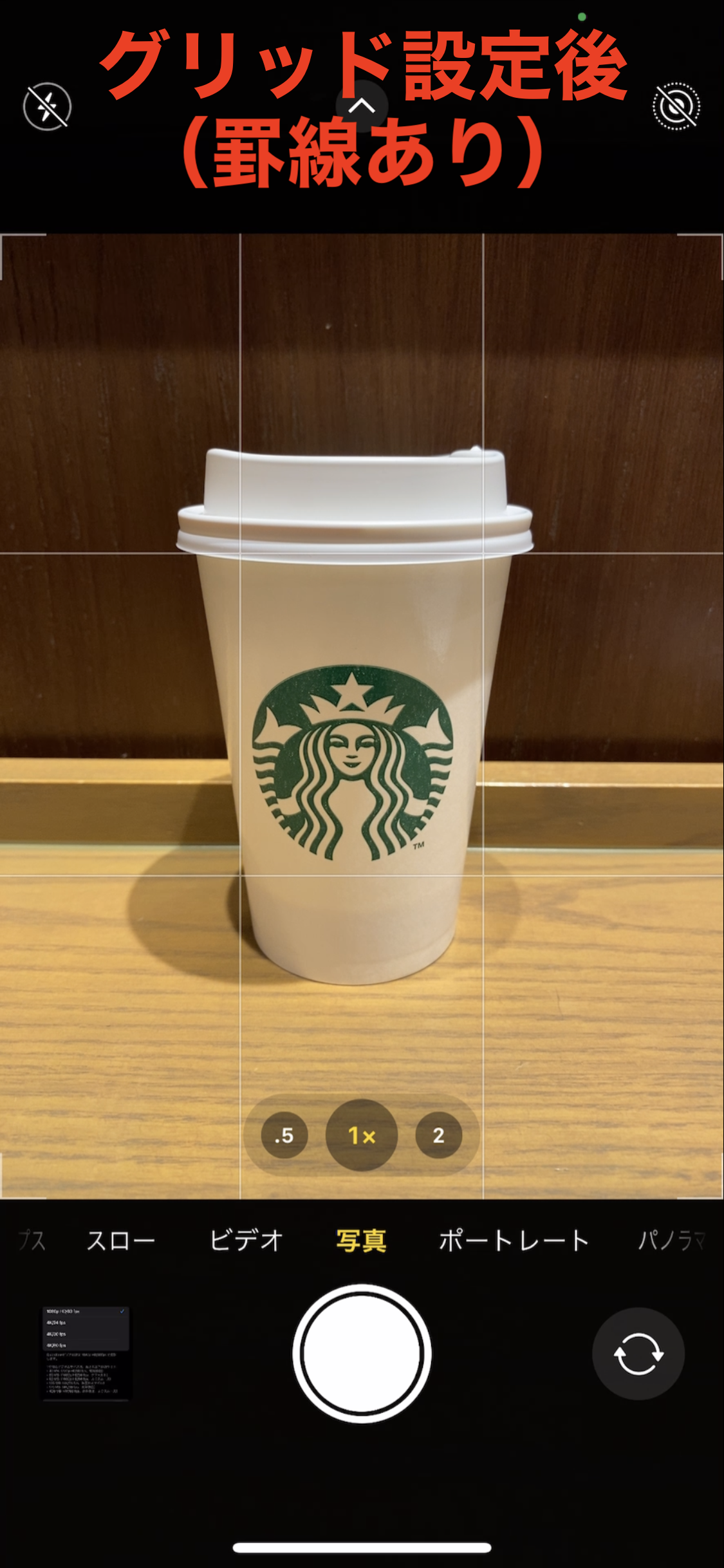 設定完了後にカメラを起動すると、画面を9分割する罫線が入ります。